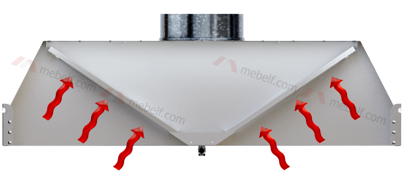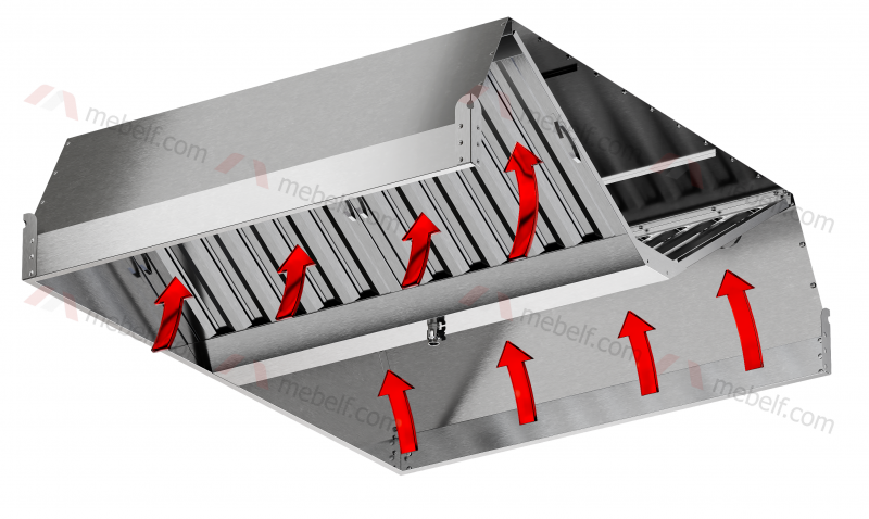- Зонт вытяжной нержавеющий островной ЗВН04 – зонт островной выполнен из нержавеющей стали AISI430 толщиной 0,7 мм и оснащен встроенными нержавеющими жироуловителями для удаления жира. Имеет 1 врезку для оттока воздуха (размер врезки по согласованию)